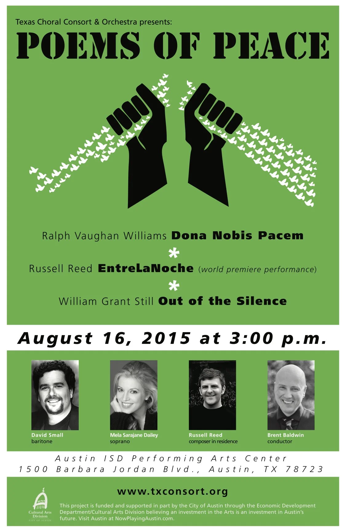 I’d been on another one of my Walt Whitman kicks (yet another artist whose darker side I’d failed to discover as a young person), and it came time to program an orchestral/choral concert for Texas Choral Consort the following summer. I already knew I’d be conducting the world premiere of Russell Reed’s multi-movement, 20-minute EntreLaNoche, and William Grant Still’s Out of the Silence, but I was struggling to come up with the “headliner” work. Because these two two offerings were not widely known (and one had only been heard in un-orchestrated, preview form), I was under some pressure from the TCC board to pick a centerpiece with broad/popular appeal. Something familiar to audiences and musicians alike. Given that we’d just swept the Austin Critics’ Table Awards for a full program of world premiere orchestra/choral works, however, I wanted to go for something a bit more ambitious…