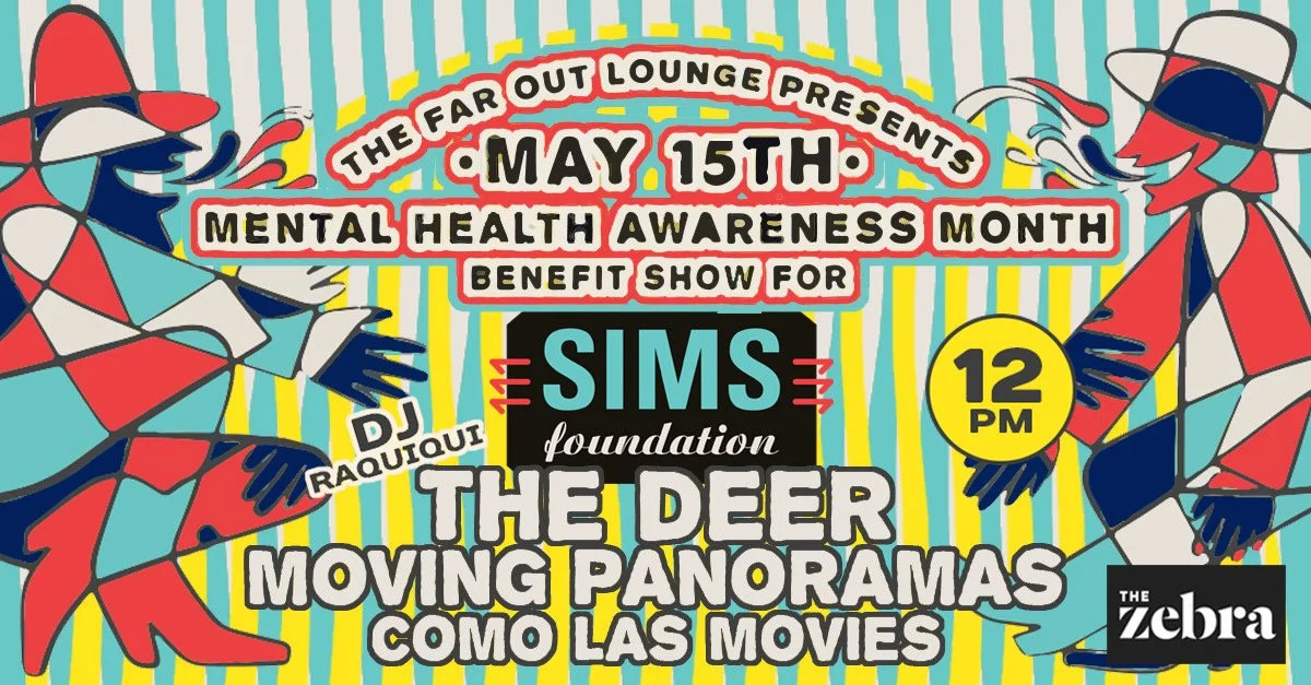 In celebration of Mental Health Awareness Month, Moving Panoramas (w/Brent on guitar) performs alongside The Deer & Como Las Movies. All proceeds support the SIMS Foundation, providing mental health and substance abuse services to Central Texas musicians.