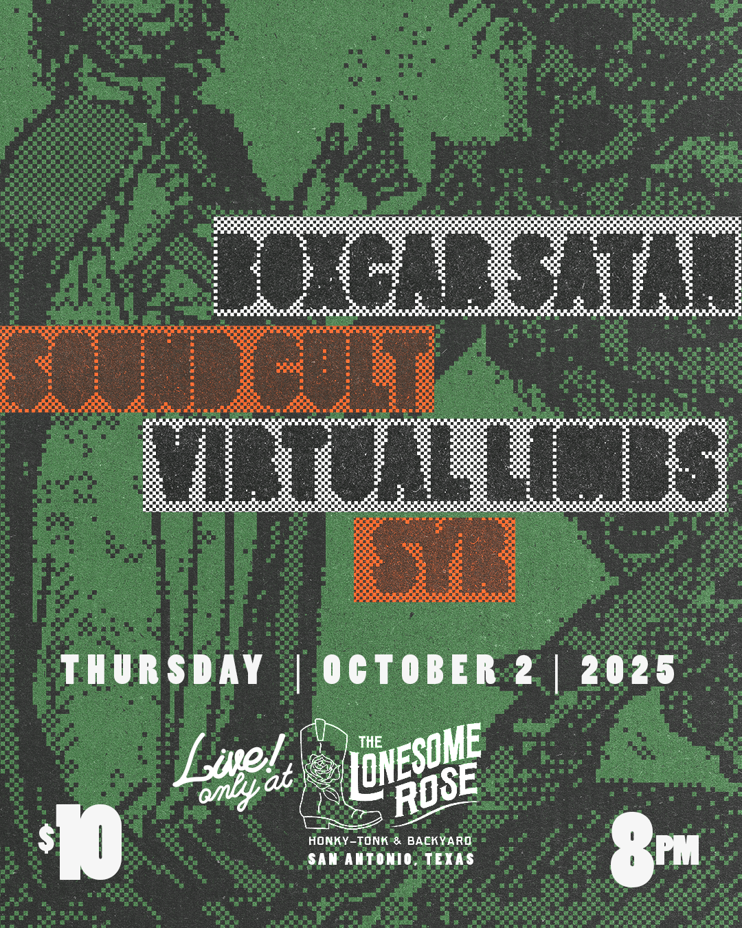Lonesome Rose presents souncult (SAN ANTONIO TX) Thursday, October 2, 2025 9:30 PM 9:30 PM 21:30 21:30 Lonesome Rose 2114 North Saint Mary's Street San Antonio, TX, 78212 United States (map) Google Calendar ICS Brent joins soundcult on lap steel for a new immersive multi-media work. Also featuring Boxcar Satan, Virtual Limbs, & Syr