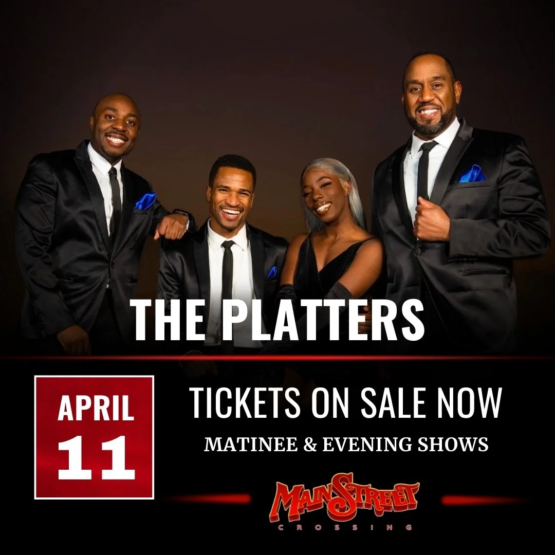 The Platters: Live at Main Street Crossing (TOMBALL TX) Saturday, April 11, 2026 3:00 PM 10:00 PM 15:00 22:00 Main Street Crossing 24620 Tomball Parkway Tomball, TX, 77375 United States (map) Google Calendar ICS Brent rejoins his friends in The Platters on guitarFeaturing a matinee and an evening showTickets & Info